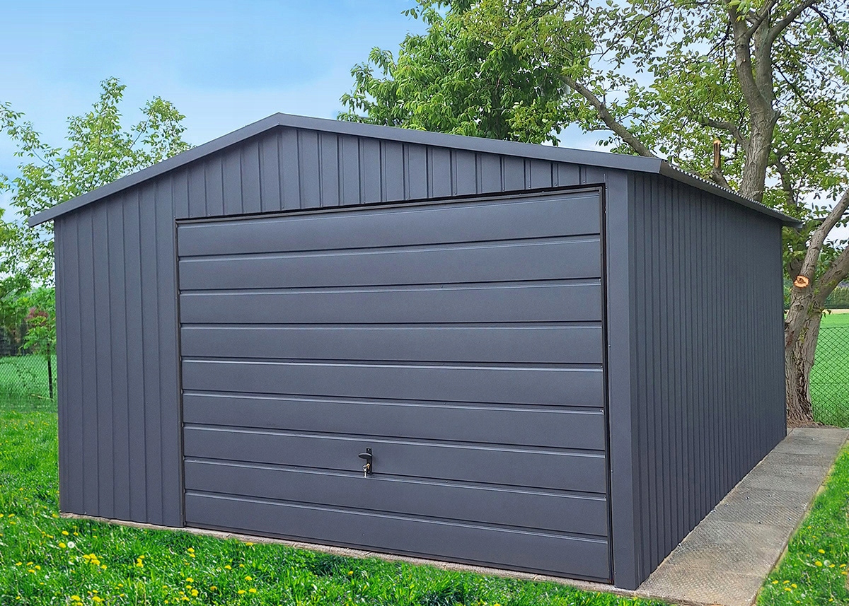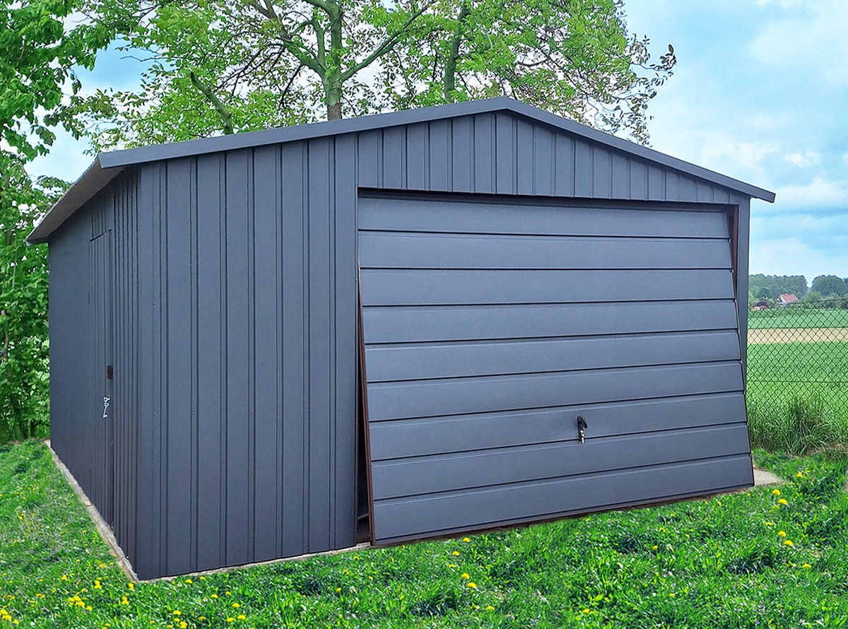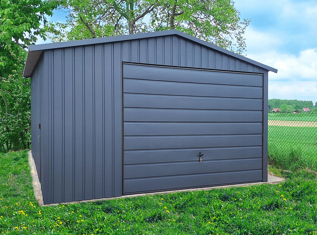 Garaż Blaszany 4×5 Grafit + Okucia Garaże Blaszane Antracyt z obróbkami