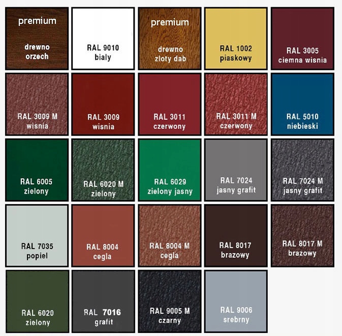 Prezentowane powyżej kolory blach mogą się różnić od faktycznych ze względu na różne ustawienia kart graficznych i monitorów