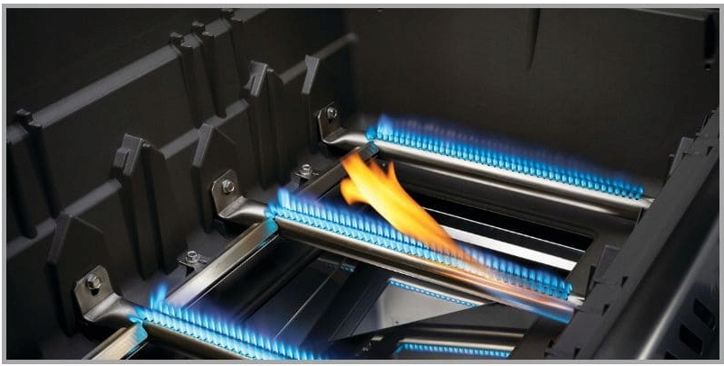 Grill Napoleon Rogue jest naprawdę Posiada sporą moc 14 kW. Dzięki takiej mocy grill osiąga temperaturę aż 300 stopni C poniżej 5 minut! Robi wrażenie, prawda? Podwójne rzędy płomieni w trzech osobnych palnikach sprawiają, że temperatura rozprowadzana jest równomiernie oraz naprawdę szybko! Palniki wykonane zostały ze stali nierdzewnej, więc nie trzeba się bać o ich wytrzymałość – oraz objęte są aż 5 letnią gwarancją! Dodatkowo – można regulować przepływem gazu w każdym z tych trzech palników z osobna! Tym, co charakteryzuje wszystkie grille gazowe marki Napoleon, to system zapłonu JETFIRE! Jak sama nazwa wskazuje – ten innowacyjny, ale i prosty system, w momencie uruchamia grill. Dzieje się tak, ponieważ błyskawicznie wytwarzany strumień płomienia zapala indywidualnie każdy palnik gazowy