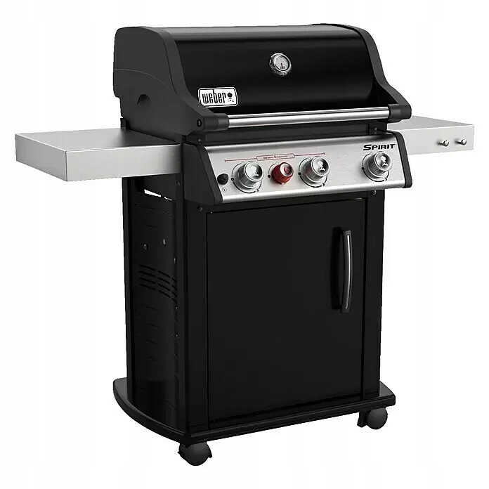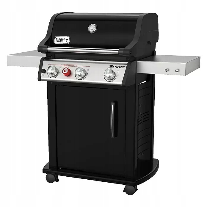 • Spirit E-325S GBS przebija wizualnie elegancką czernią i świetnymi elementami ze stali nierdzewnej. Wieczko Spirita ma podwójne ścianki, a boki wykonane są z odlewanego ciśnieniowo aluminium. Zapewnia to doskonałą izolację cieplną w komorze gotowania. Termometr w pokrywie jest obowiązkowy i pozwala na stałą kontrolę temperatury w komorze gotowania. Półki boczne są stałe i nie można ich złożyć.