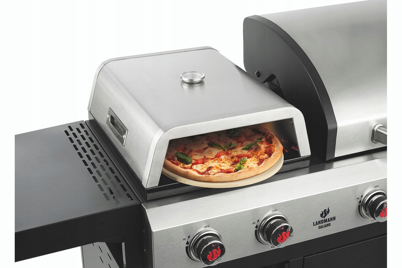 - Pizza-attachment: Wbudowany piec do pizzy z kamieniem w zestawie